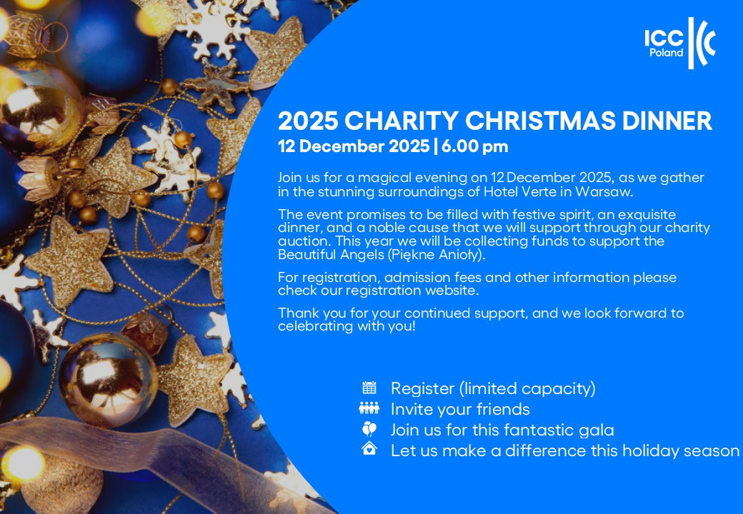 EventWe’re delighted to invite you to the 2025 ICC Poland Charity Christmas Dinner, taking place on Friday, 12 December 2025, at the Hotel Verte.