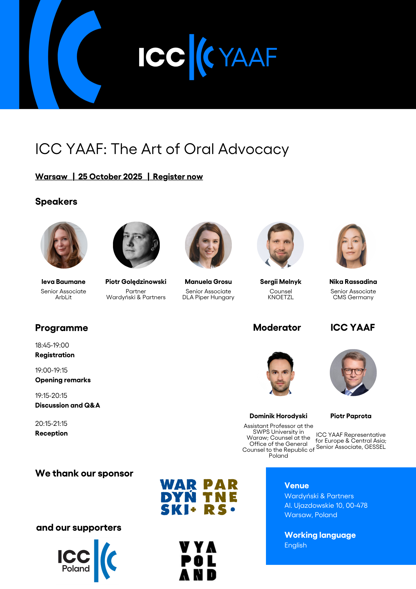 Link do rejestracji: https://events2go.iccwbo.org/event/icc-yaaf-the-art-of-oral-advocacy